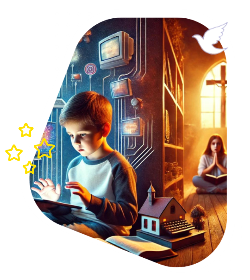 Aproxime seus filhos de Deus, trocando o tempo de telas por momentos de aprendizado espiritual e valores cristãos.